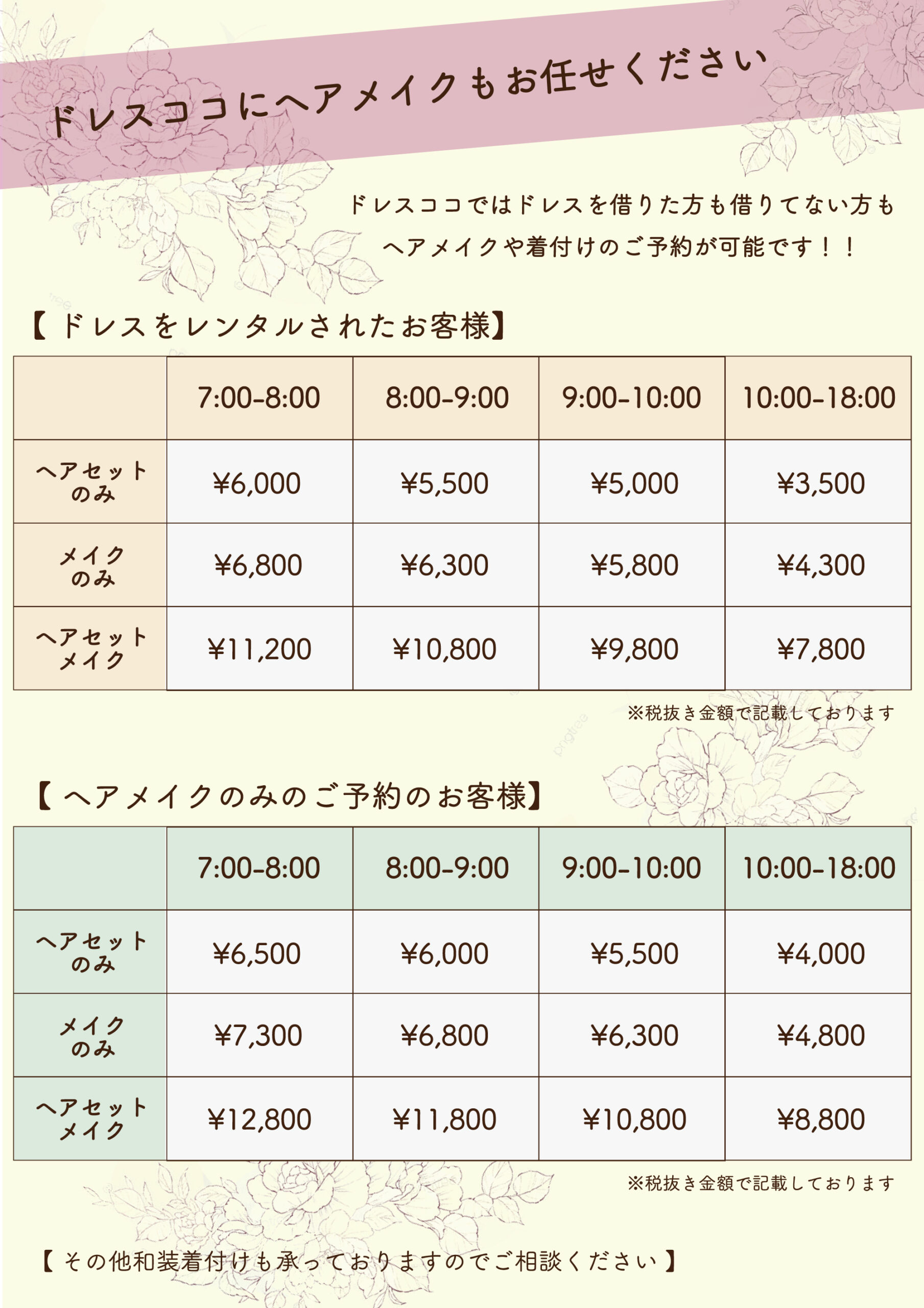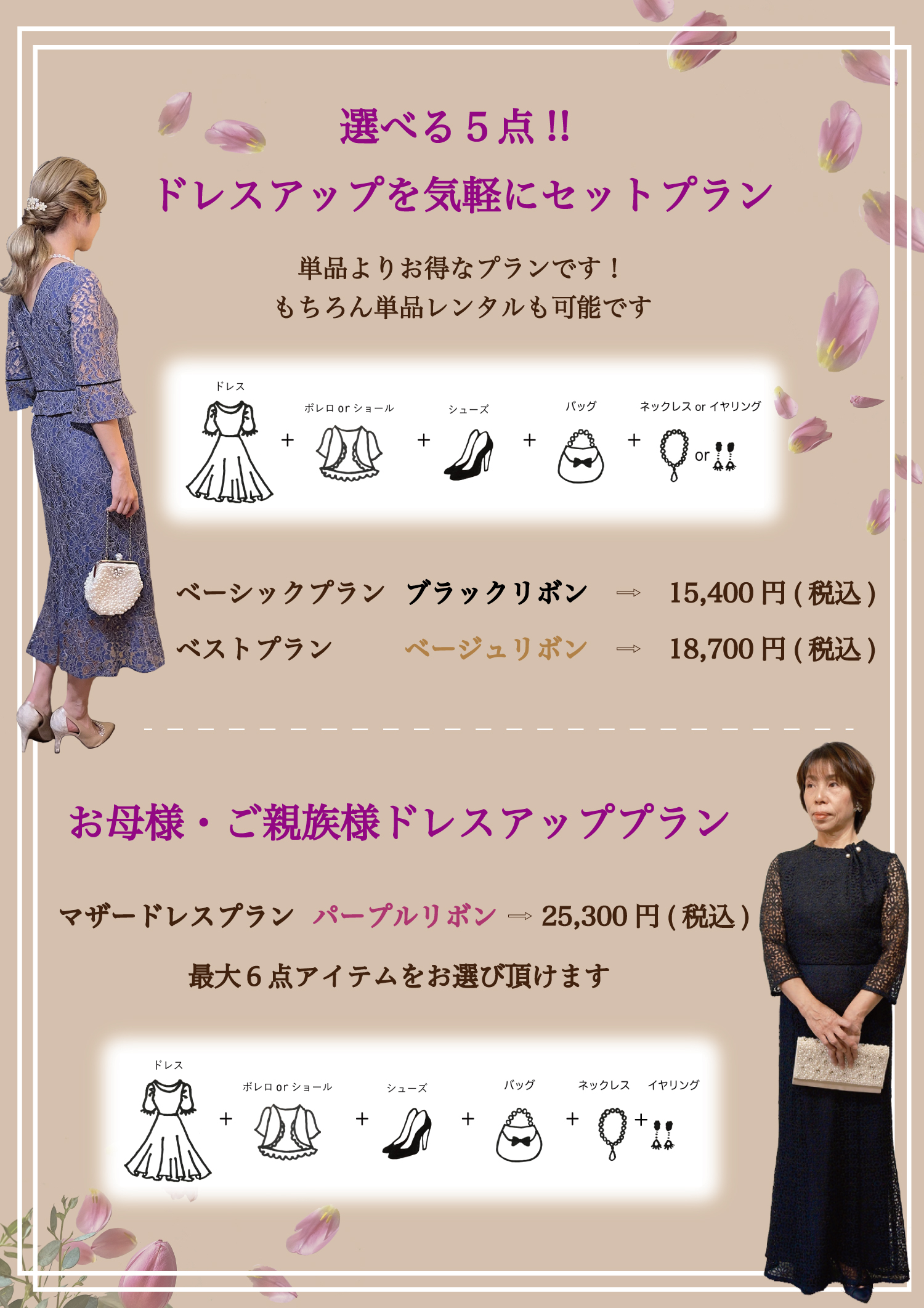 セットプランは一式レンタル金額で15,400円(税込)〜ご案内可能です✨