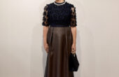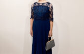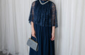 レースが上品なネイビードレス。チ