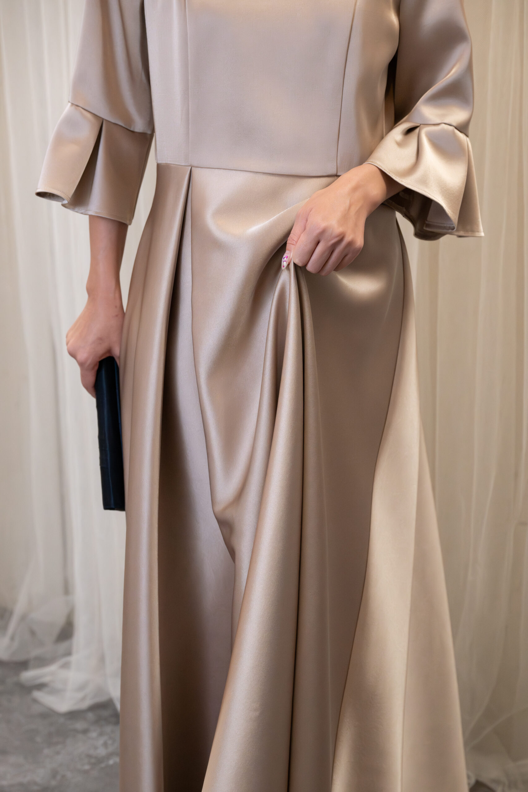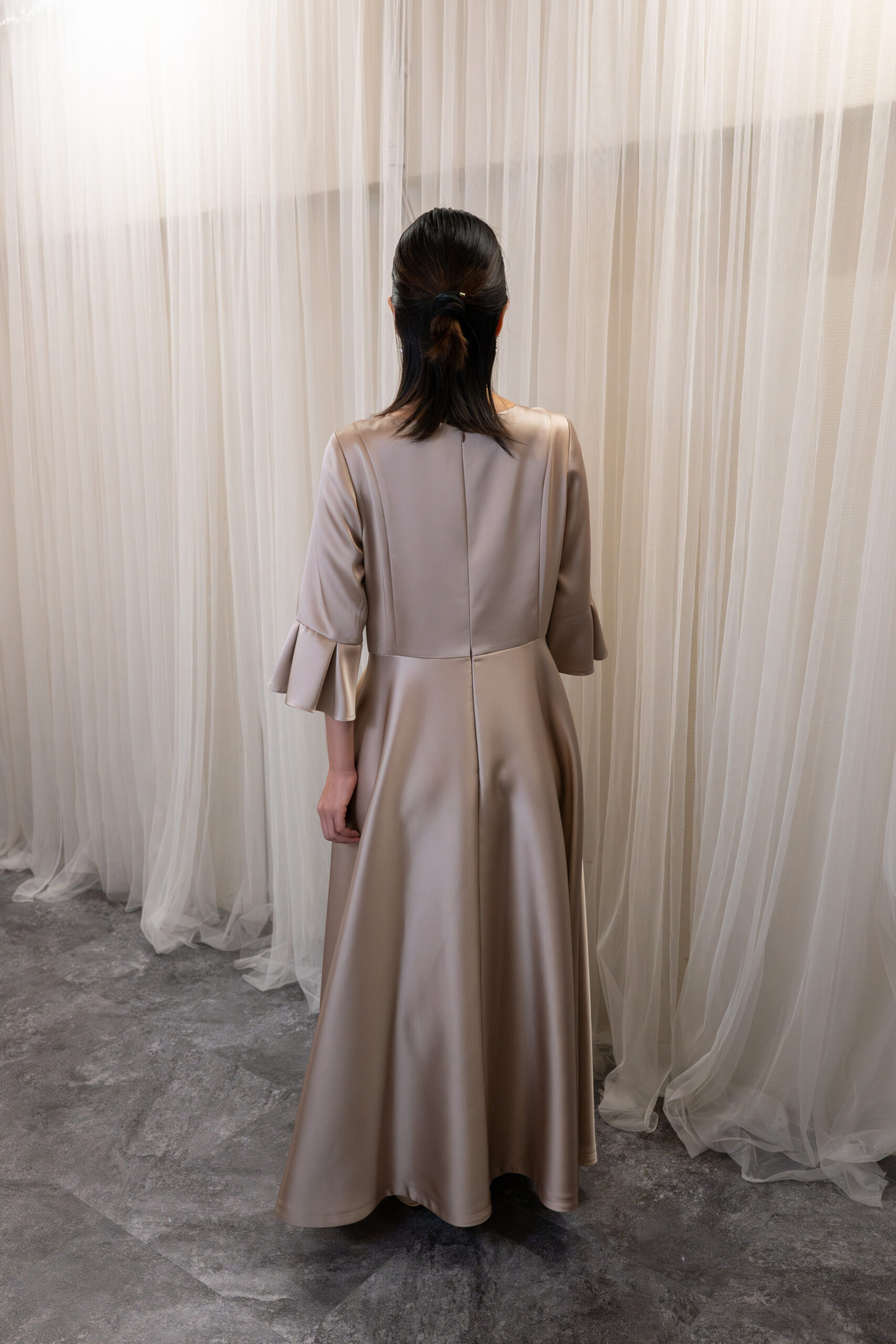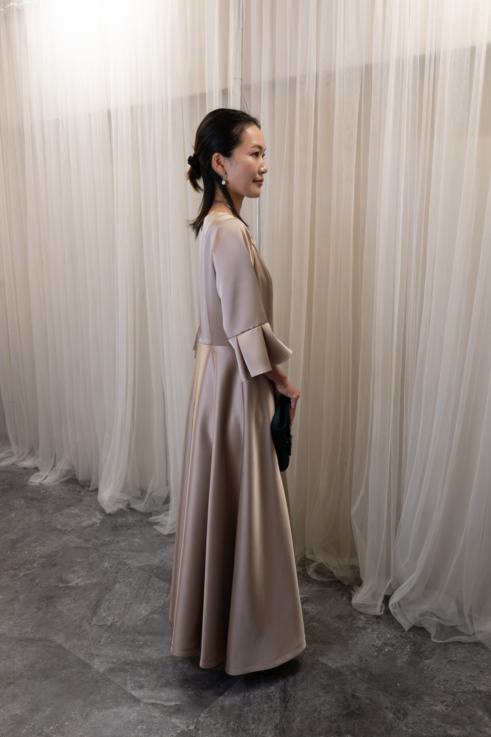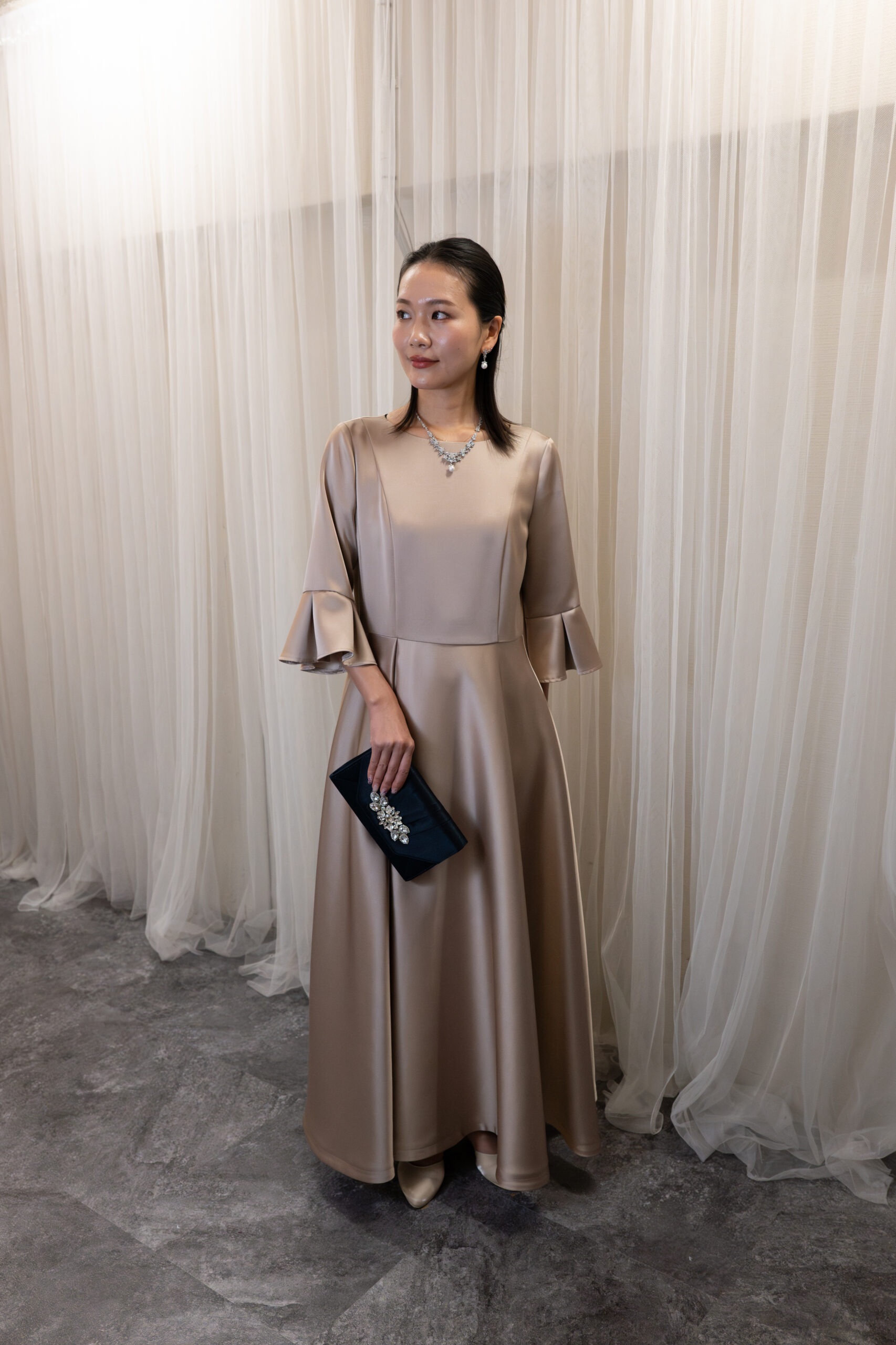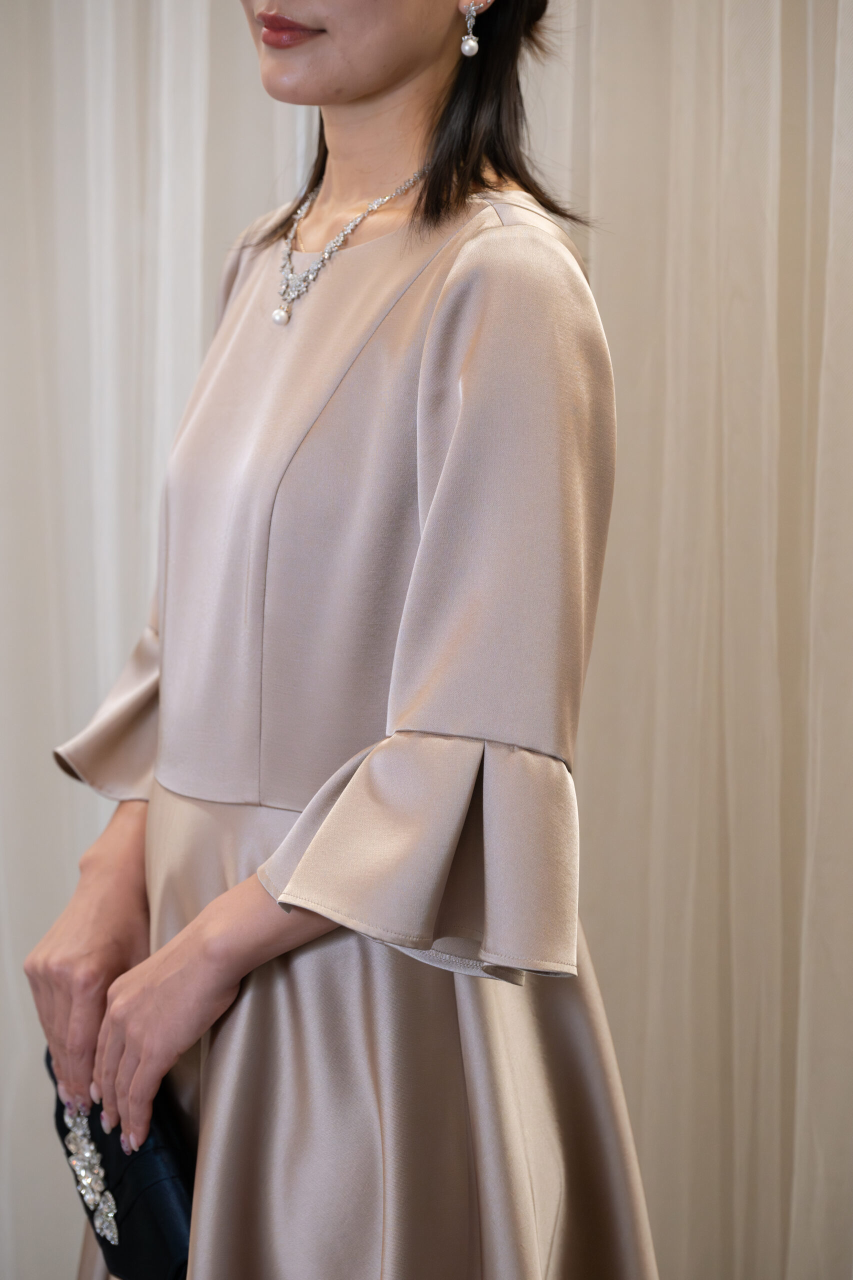 サテンで高級感のあるドレスです