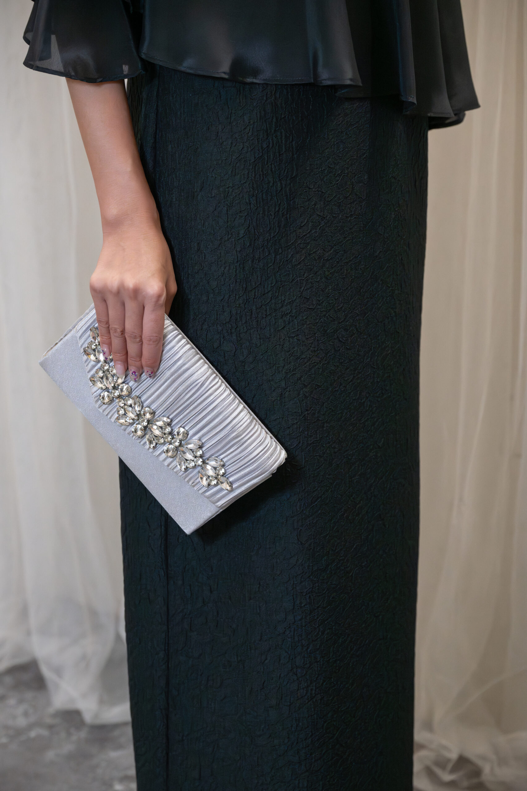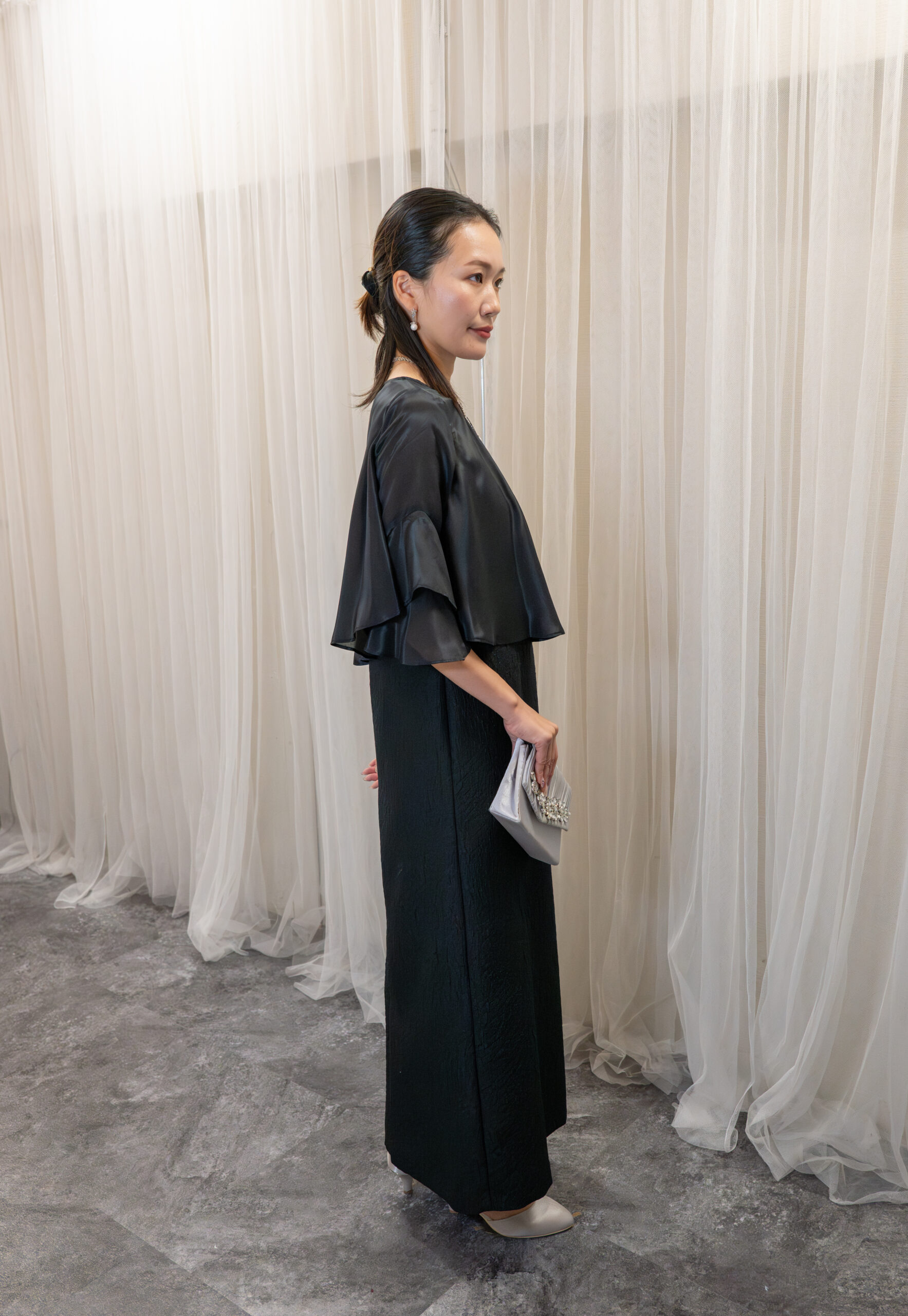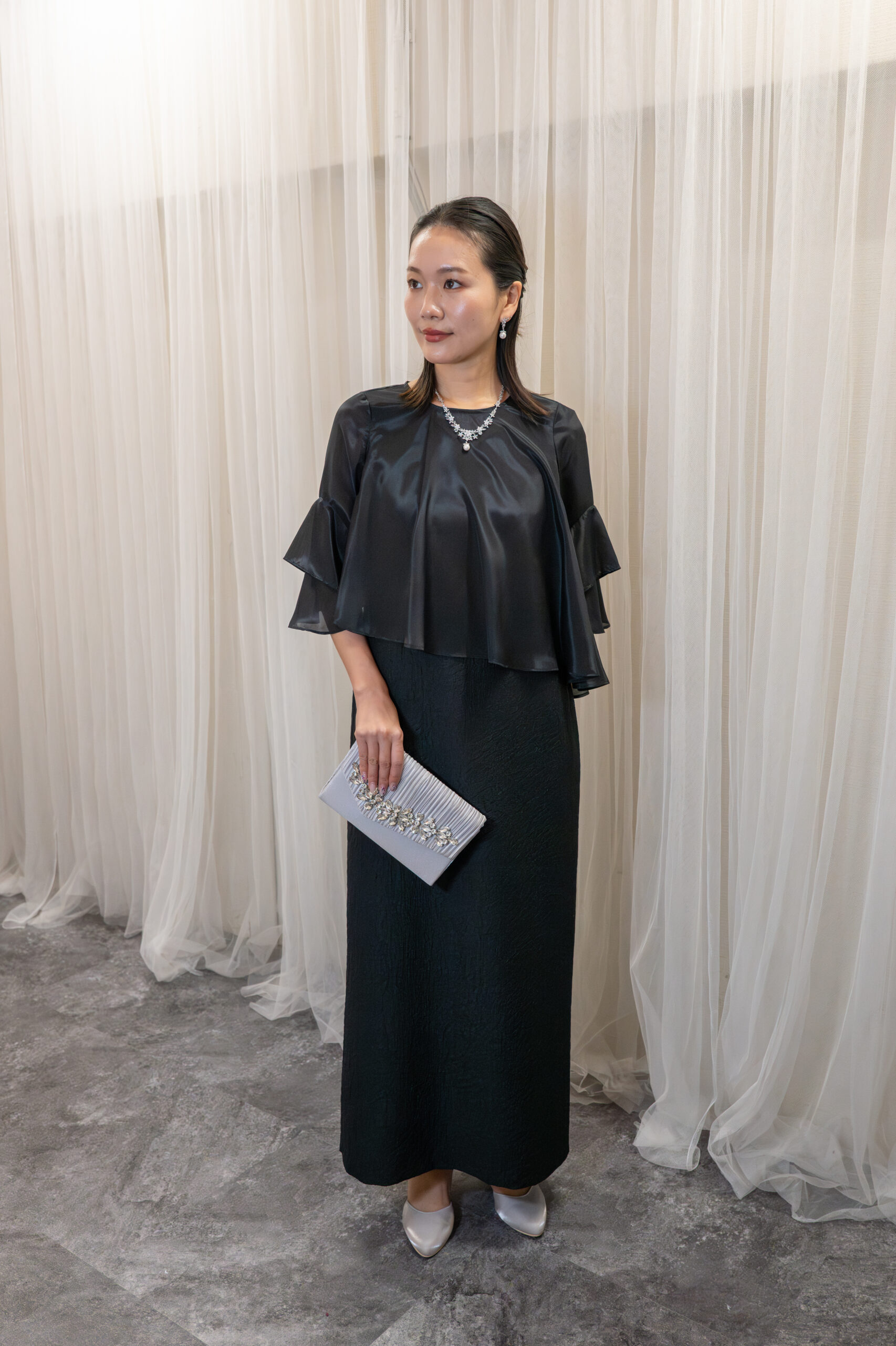 シンプルなシルエットのドレスに