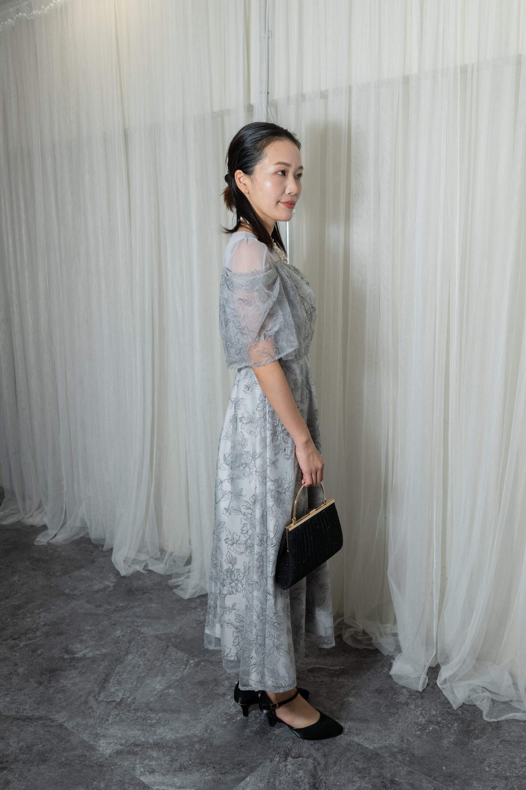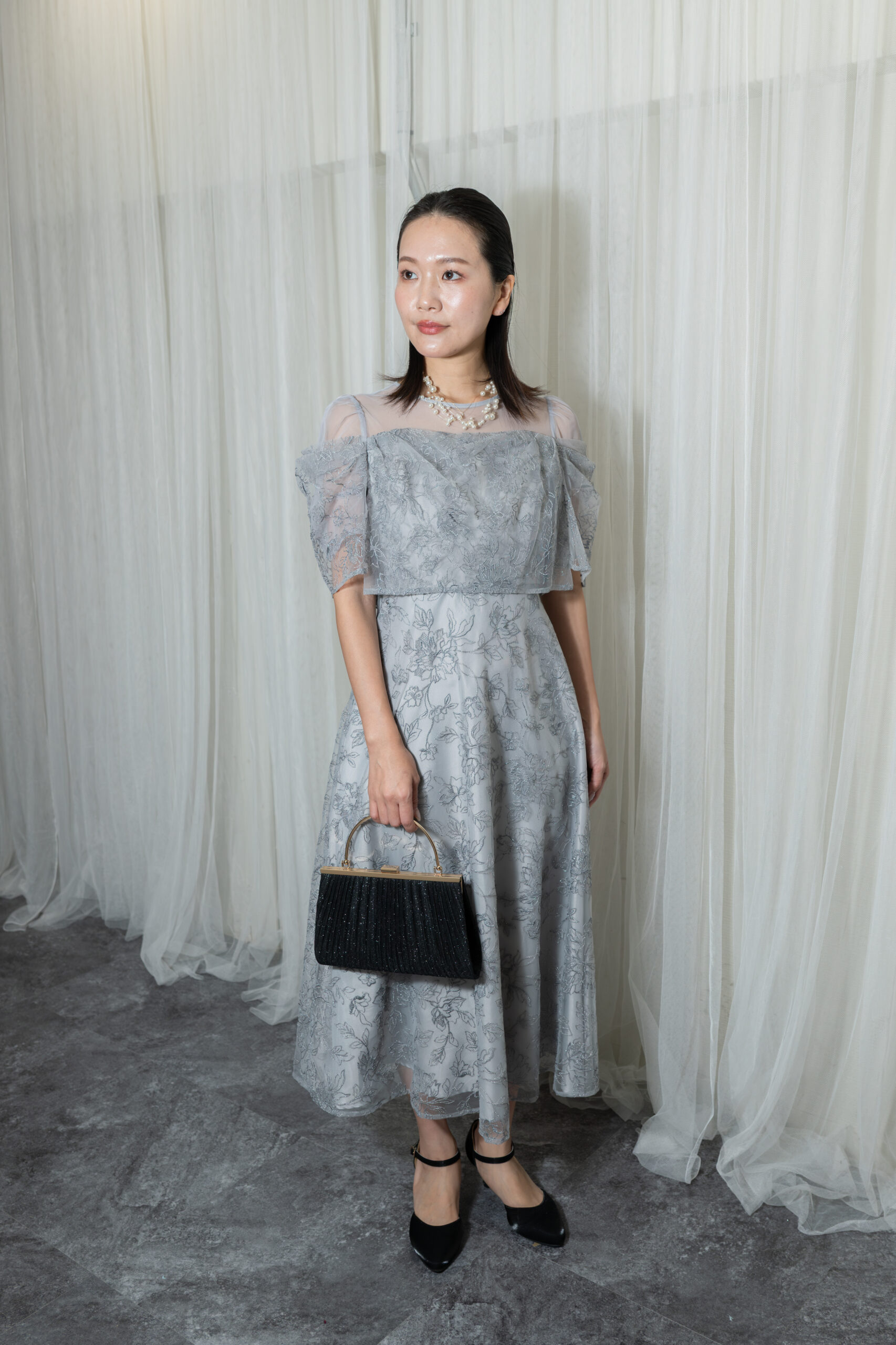 オフショル風のドレスです